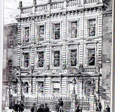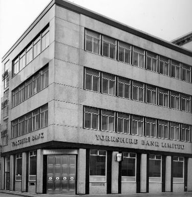 In 1911 after brief period of liquidity issues the Bank was taken over by a group of major banks and was renamed "Yorkshire Penny Bank Ltd". Temporary offices were taken at 1A Lombard Street, then more permanent premises at 26 King Street (close to Cheapside). In 1923 a branch was opened in the King Street premises and both Foreign and Stock & Share Departments transferred there. in 1930 the branch and departments were moved to Farleigh House, 97 - 99 Cheapside, acfross the road from the final London Office . The appointment of Harry Ashworth as London Office Manager in 1939 and his subsequent promotion to AGM and GM brought General Management to London on a more permanant basis. In its centenary year, 1959, the London Office was moved across the road to the corner of Bow Lane, next door to St Mary le Bow.