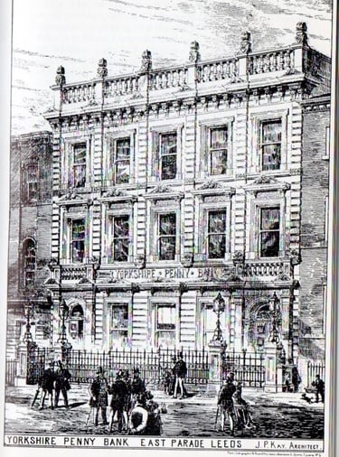 The first "Head Office" was the home of William Magson Nelson, the first Secretary, in Skinner Lane, Leeds., a house which has long since been demolished.. When the bank was ready to open for business in 1858 it was felt that more professional address was needed, and the Executive Committee signed a lease on the ground floor of 2 East Parade, Leeds, very close to the present junction with Infirmary Street. In 1865 part of the ground floor was opened as the first "Daily Branch" opening every day for normal banking hours. By 1883 the Bank was occupying the whole of 2 East Parade, and by 1890 the Bank had outgrown the premises. Land was bought on Infirmary Street, the site of the old Infirmary, and the new building was opened by the Duke of Devonshire on 7 August 1894.